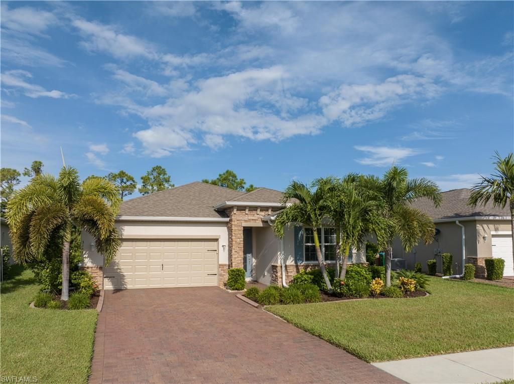 What an absolute beauty! Situated on the Amadora Circle side of Entrada, sits this gorgeous Clifton model, which is one of the most sought-after floorplans in the community. Entrada is a gated, pet and Golf cart friendly community with underground utilities, sidewalks and resort style amenities with LOW HOA fees. Inside this beautiful home, you'll find over 1800 sq ft with an open and welcoming floorplan, a beautifully upgraded leaded glass front door, 3 ample sized bedrooms, 2 bathrooms (complete with tile behind the tub in the spare bathroom, glass shower door and tile cut ins in the master bathroom and solid surface countertops in both), 8 ft doors throughout, 42 inch all wood cabinets in the kitchen with upgraded granite, glass tile backsplash, spacious walk - in pantry, Culligan water filtration system and so much more. Entire home exterior was recently painted. The garage has extra storage cut out space with built in shelves. Each home on the Amadora Circle side of the community is a DR Horton Signature Series home which means upgraded features. Each home showcases paver drive ways, manicured lawns and sits on a slightly larger lot size than the homes on the opposite side of the community. Outside of this beautiful home, you'll find tasteful landscaping adorned by upgraded landscape curbing and palm trees. Sip coffee and enjoy nature from your spacious paver lanai overlooking the serene preserve for peace and privacy. Entrada has no CDD fees and is NOT in a flood zone which makes this community highly desirable.